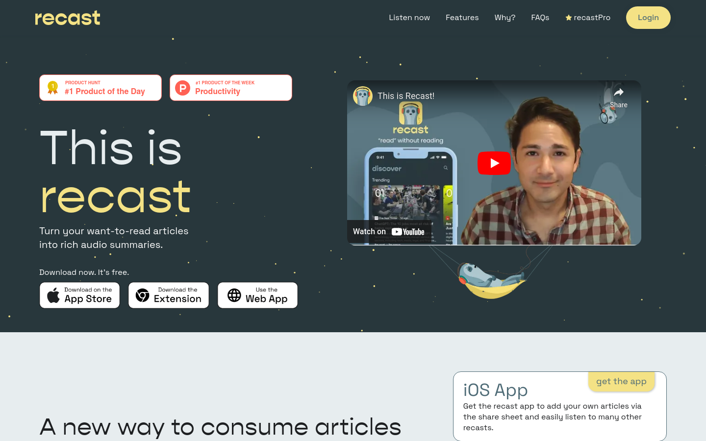 Recast vous offre la possibilité de convertir rapidement vos contenus écrits en formats audio, pour une écoute en tout lieu et à tout moment. Cet outil vous permet de transformer votre texte en un audio plus vivant, plus concis et plus accessible. Disponible sur l'Apple Store et en extension Chrome, Recast s'adapte à vos préférences.